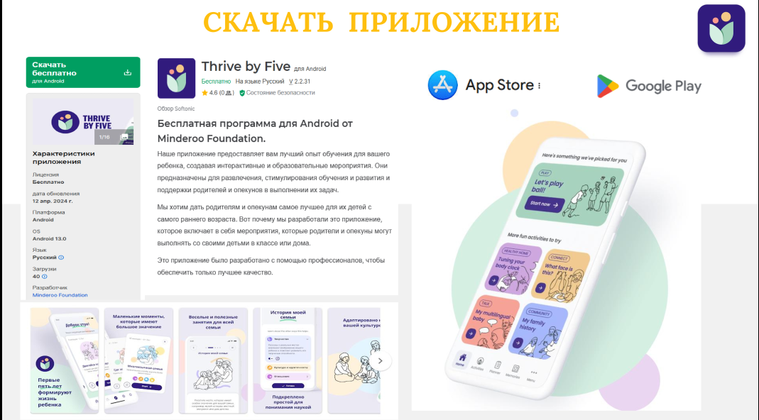 Мобильное приложение «Беске дейін үлгер» (международное название - Thrive by Five) разработано Министерством просвещения РК совместно с австралийским благотворительным фондом Minderoo на основе нейробиологических исследований Сиднейского Университета Разума и Мозга и адаптировано к потребностям и контексту нашей страны.