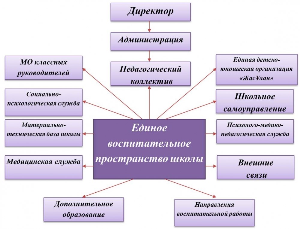 Система воспитания осуществляется всем коллективом организации образования. Все сотрудники вносят свой вклад в реализацию развития обучающихся. Эта работа реализуется организацией образования в тесном взаимодействии и сотрудничестве с родителями обучающихся, с другими объектами социализации – социальными партнерами организации образования в рамках основных направлений воспитательной работы: